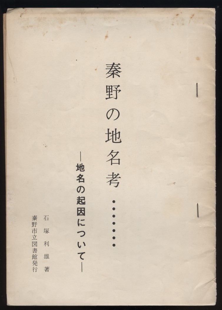 - 秦野の地名考 地名の起因について 石塚利雄著 秦野市立図書館発行 昭和47年 検:神奈川県秦野市地名由来 相模国歴史 秦氏