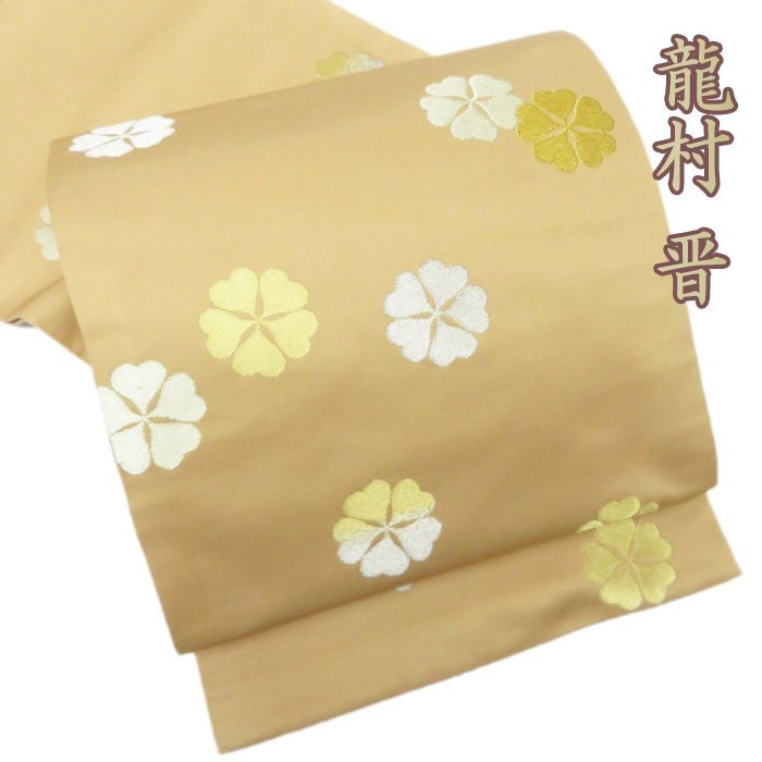 - ★きもの北條★ 特選 龍村晋 名月桜 桜模様 全通 金銀糸煌めく、華ある装いに 赤白橡色 金銀 袋帯 A734-10 【中古】