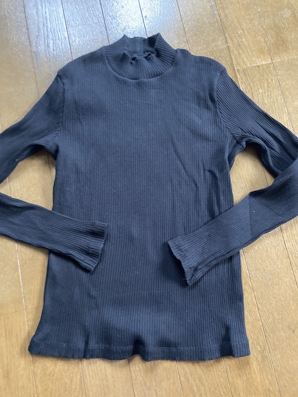 > ユニクロ Mサイズ リブ編みスタンドカラー レディースシャツ 長袖 ブラック★