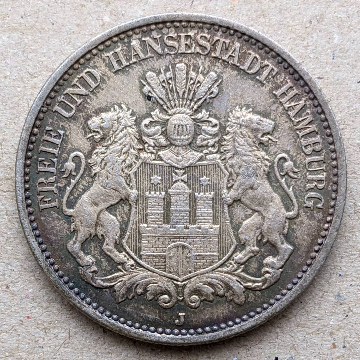 - 1911年 ドイツ ハンブルク 2マルク 銀貨 EF ハンブルクミント