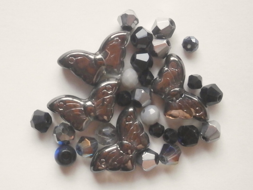 - ガラスビーズ★蝶々★タイプ B★ブラック系★4