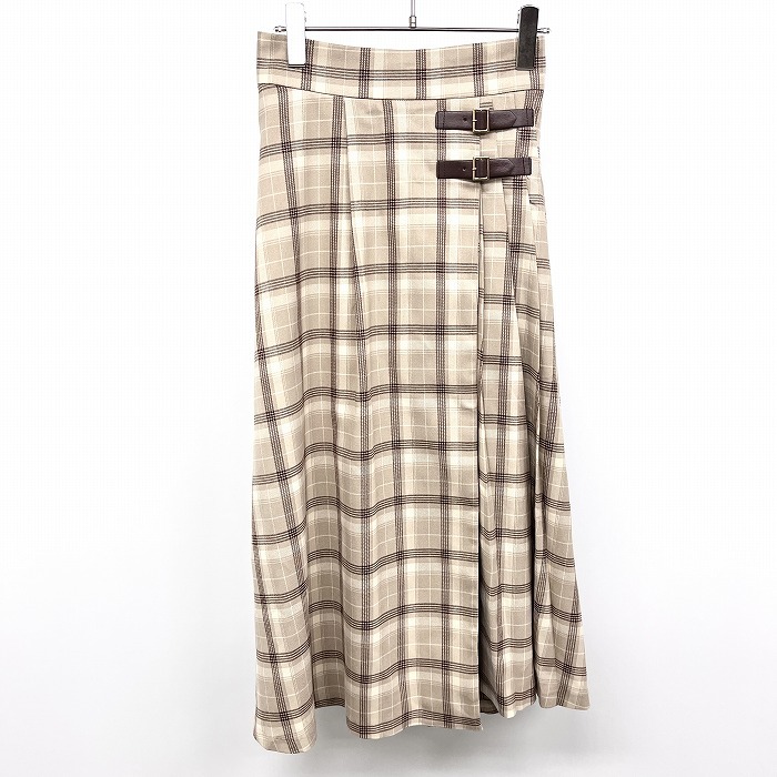 > イング 【新品/訳アリ】INGNI ラップスカート 裏地無し チェック ポリエステル×ポリウレタン M ベージュブラウン系 茶系 レディース