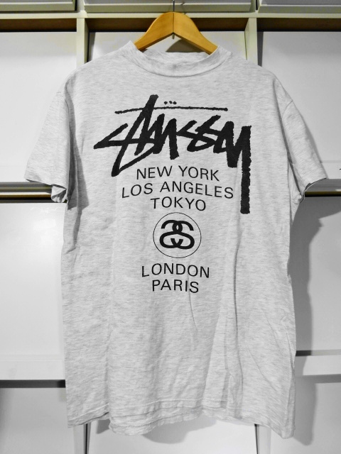 > 初期80s OLD STUSSY WORLD TOUR Tシャツ 光沢タグ 黒タグ ステューシー ヴィンテージ ストックロゴ ショーンフォント ワールドツアー USA製