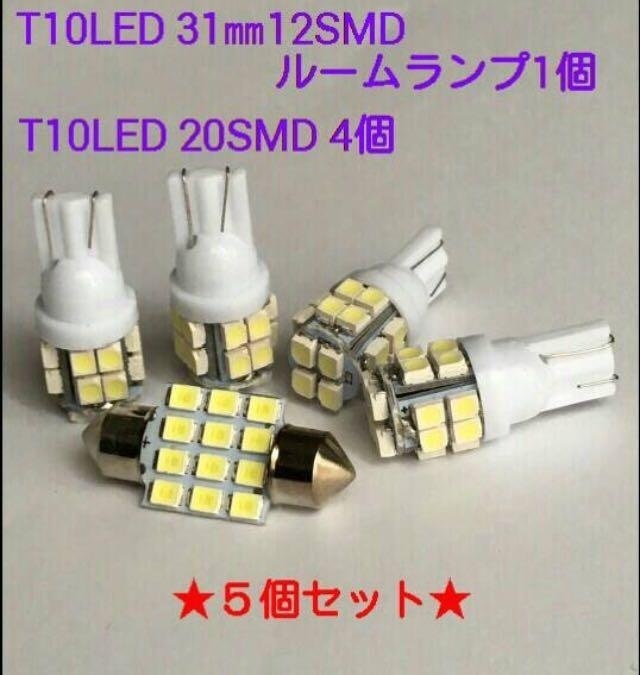 - 5個セット◇T10 LED 20連 4個+マクラ型 31mm 12連 ウェッジ球 室内灯 車内灯 カスタム ライト パーツ ホワイト