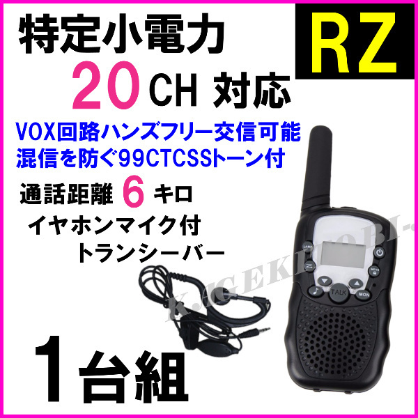 - RZ イヤホンマイク付 1台/特定小電力 20CH対応 VOX&トーン付 ハンディ トランシーバー 過激飛び 新品 / ケンウッド アルインコ との交信に
