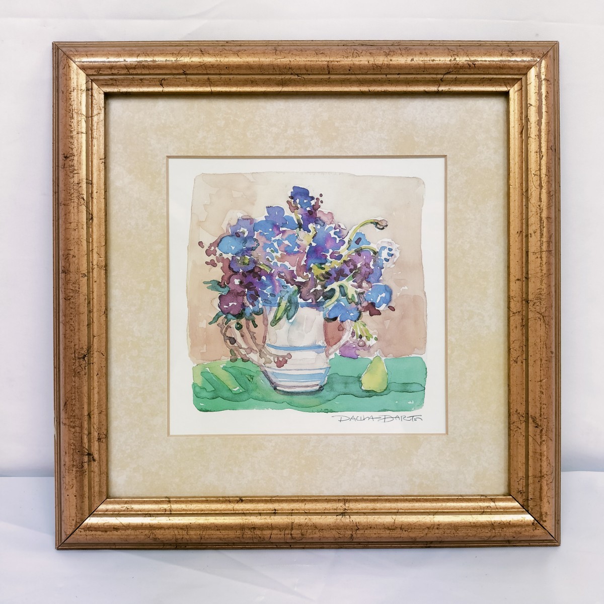 - 【美品】水彩画 花 花瓶 28.5×28.5 紫陽花 あじさい ポット 静物画