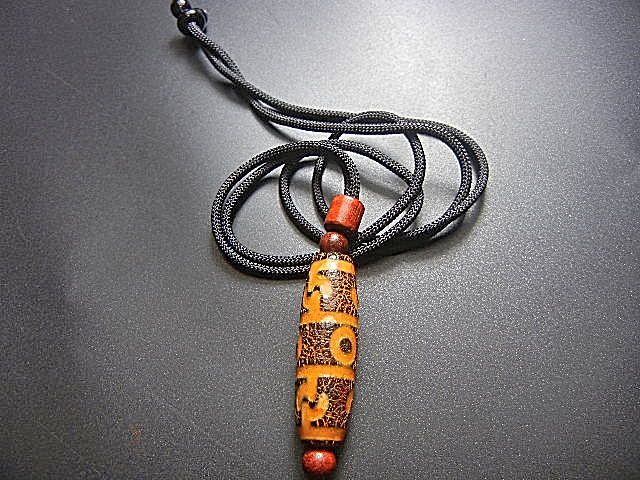 - ★西蔵至純天珠★XT8910 火供龍燐 三眼法器 窯焼き 39mm牙黄、入手難