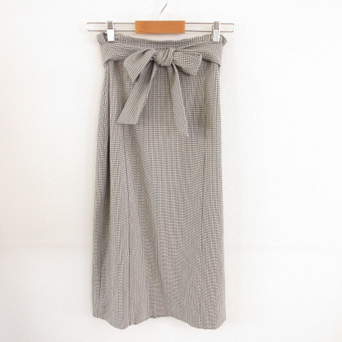 - バナナリパブリック BANANA REPUBLIC スカート タイト ミモレ丈 チェック ストレッチ 黒 ベージュ 4 *T433 レディース