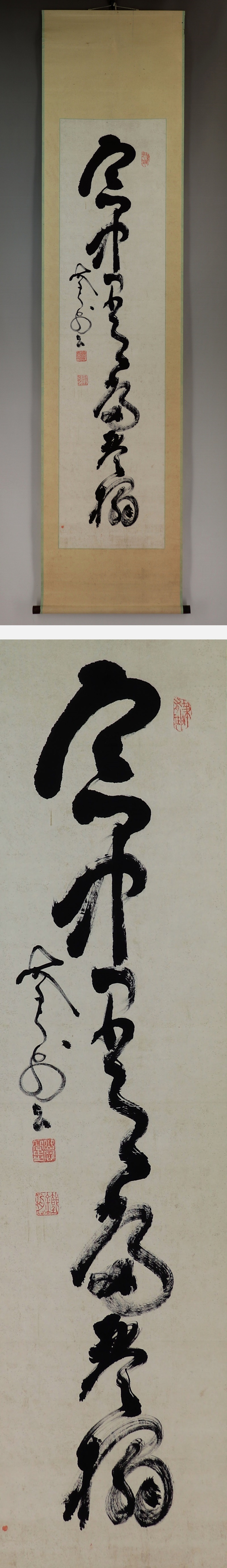 - 【真作】山岡鉄舟【一行書】◆紙本◆合箱◆掛軸 v03189