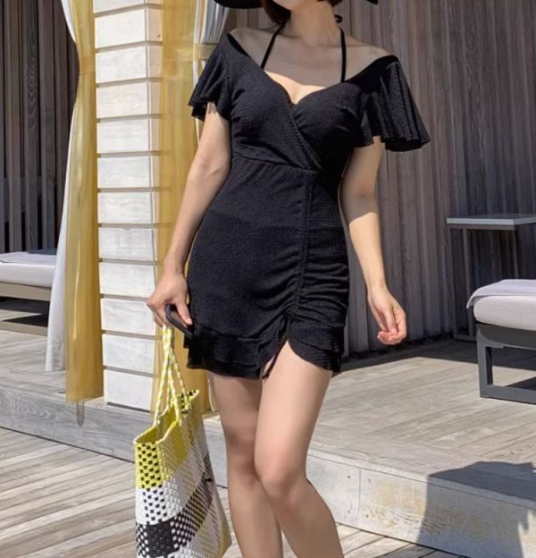 - ★★★大反響の予感! レディース 水着 ワンピース ミニスカート フレア ホルターネック d98