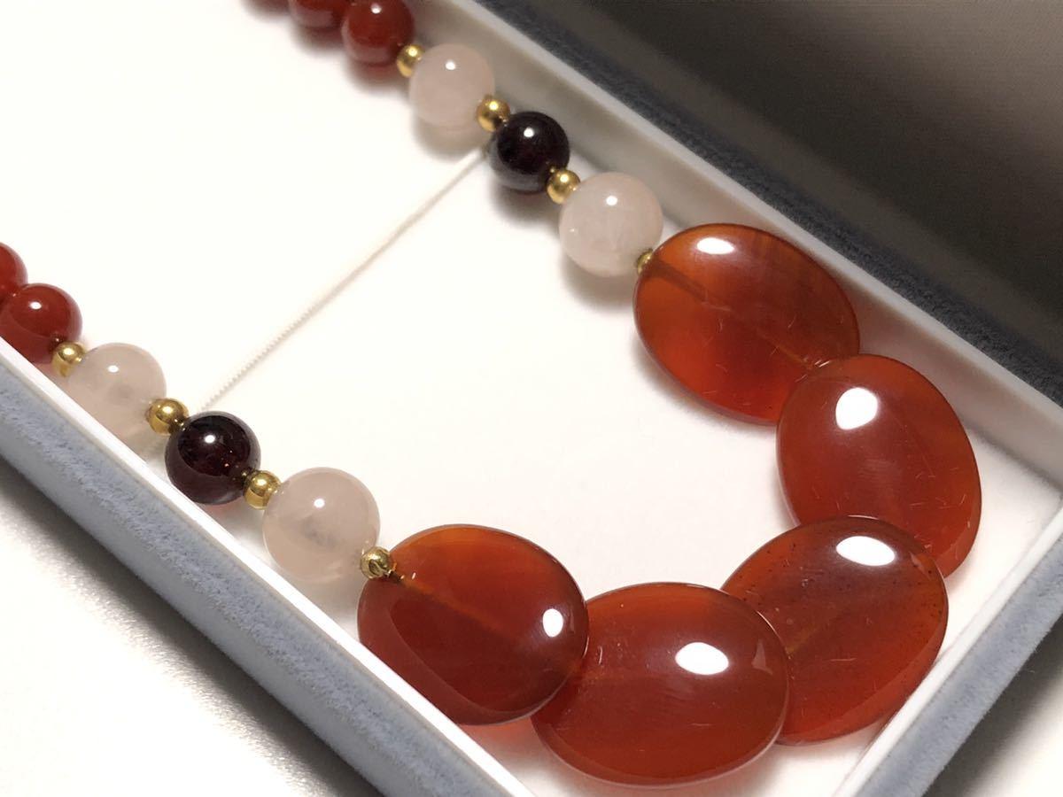 > I・E・I(インペリアル・エンタープライズ株式会社) 本瑪瑙 ローズクォーツ レッドアンバー K18 28.0g デザイン ネックレス