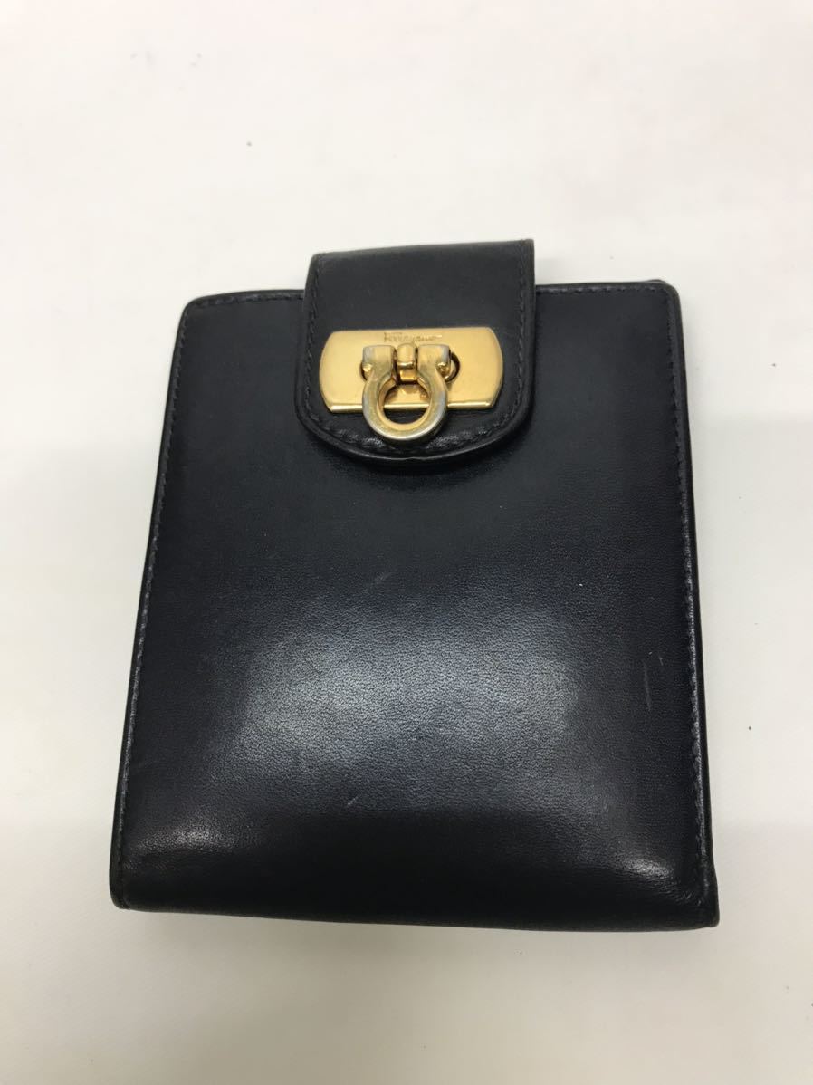 - サルバトーレフェラガモ 二つ折り財布 22 2037 レディース Salvatore Ferragamo ネイビー ゴールドカラー金具