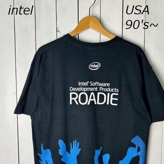 > T●310 USA古着 00s~ intel インテル ROADIE 両面プリントTシャツ L 黒 オールド ヴィンテージ アメリカ古着 企業物 GAFAM PC