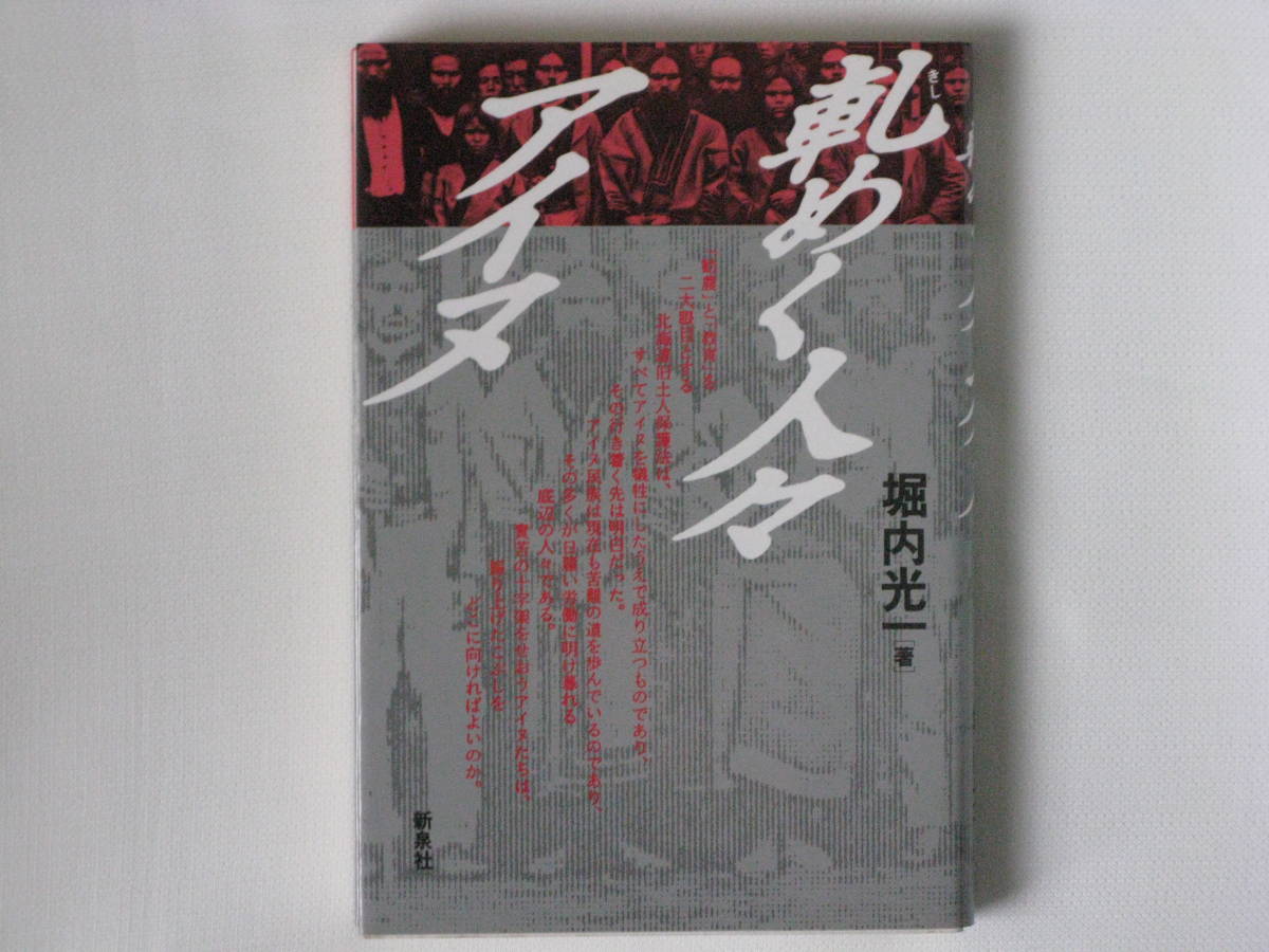 - 軋めく人々・アイヌ 堀内光一 神泉社 アイヌ民族への同化政策の第一は狩猟民族から農耕民への作り変え。第二の柱は、教育による洗脳である