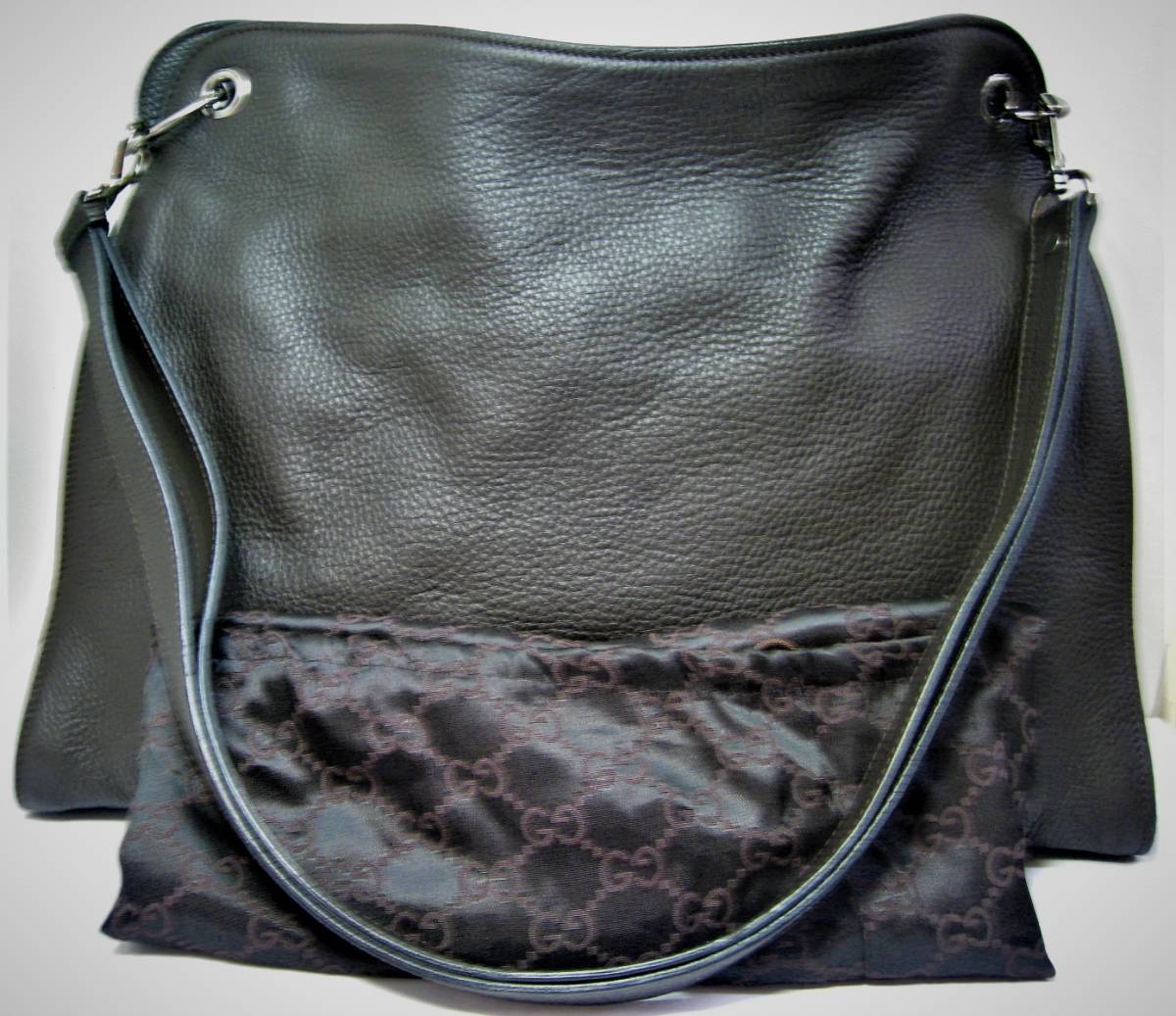 > 【東京 谷中 質屋おぢさん】ほぼ未使用 男女兼用 本革 グッチ GUCCI ショルダー付 焦茶 108853