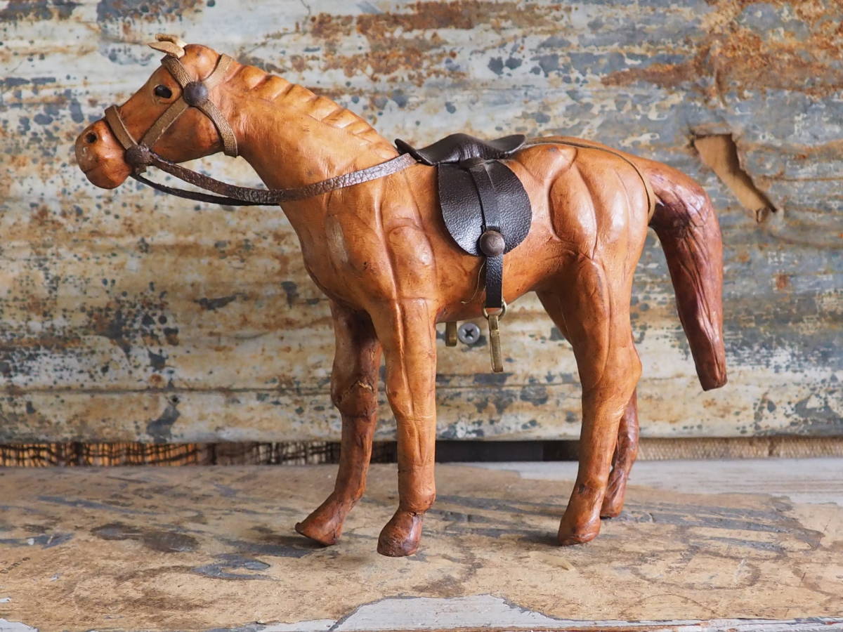 - 【アメリカンアンティークレザーのリアルな仔馬】人形置物ドール古道具インテリア骨董ぬいぐるみ鞍鐙真鍮インダストリアル本革ミニチュア