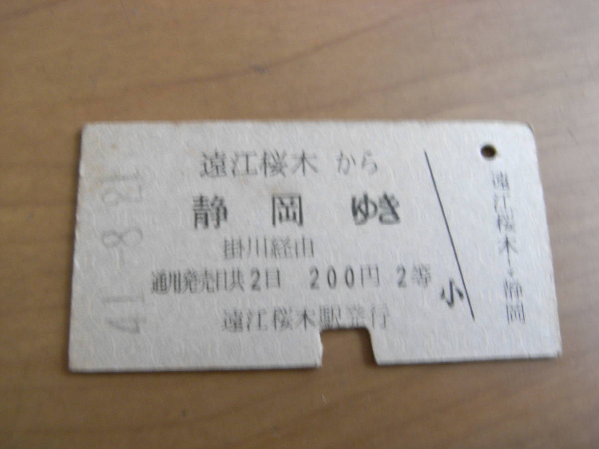 - 二俣線 遠江桜木から静岡ゆき 掛川経由 200円2等 昭和41年8月21日 遠江桜木駅発行