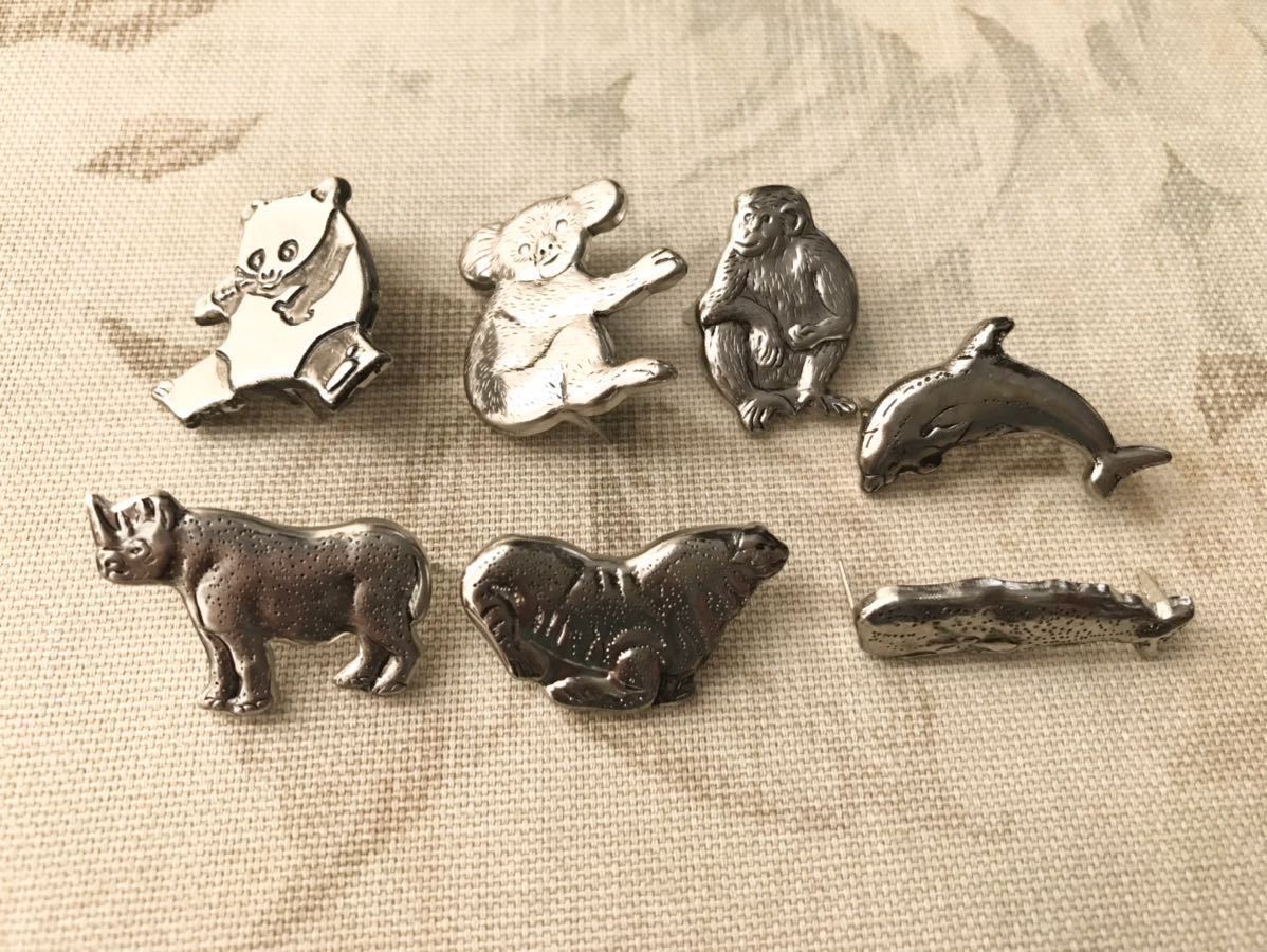 - 不明 動物 パンダ コアラ 猿 チンパンジー サル サイ トド 海豚 イルカ 鯨 マッコウクジラ 金属パーツ クラフト 部品 スタッズ