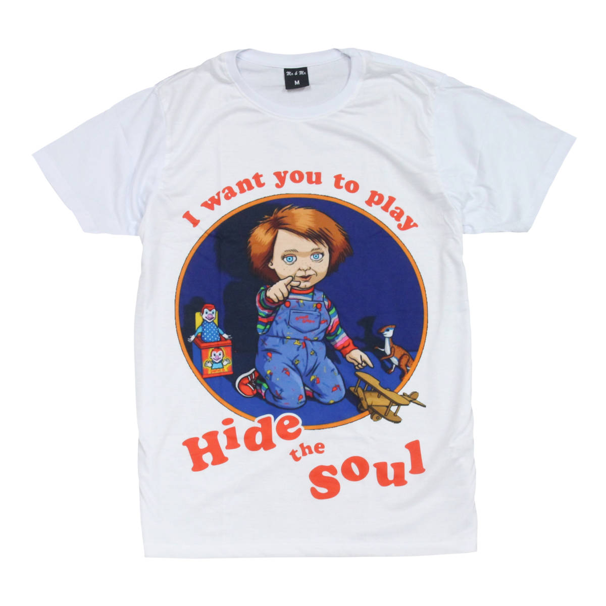 - チャッキー チャイルドプレイ ホラー映画 レトロデザイン おしゃれ ストリート系 おもしろTシャツ メンズ 半袖★tsr0863-wht-l
