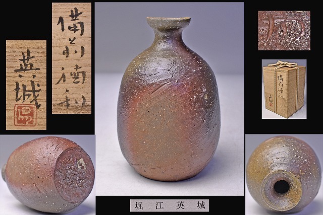 > 堀江英城 ★ 備前 徳利 ★ 共箱 栞 ★ 父: 堀江祥山 ★ 手取りの良い造形に轆轤目景色の良い逸品 ★ 酒器 ★