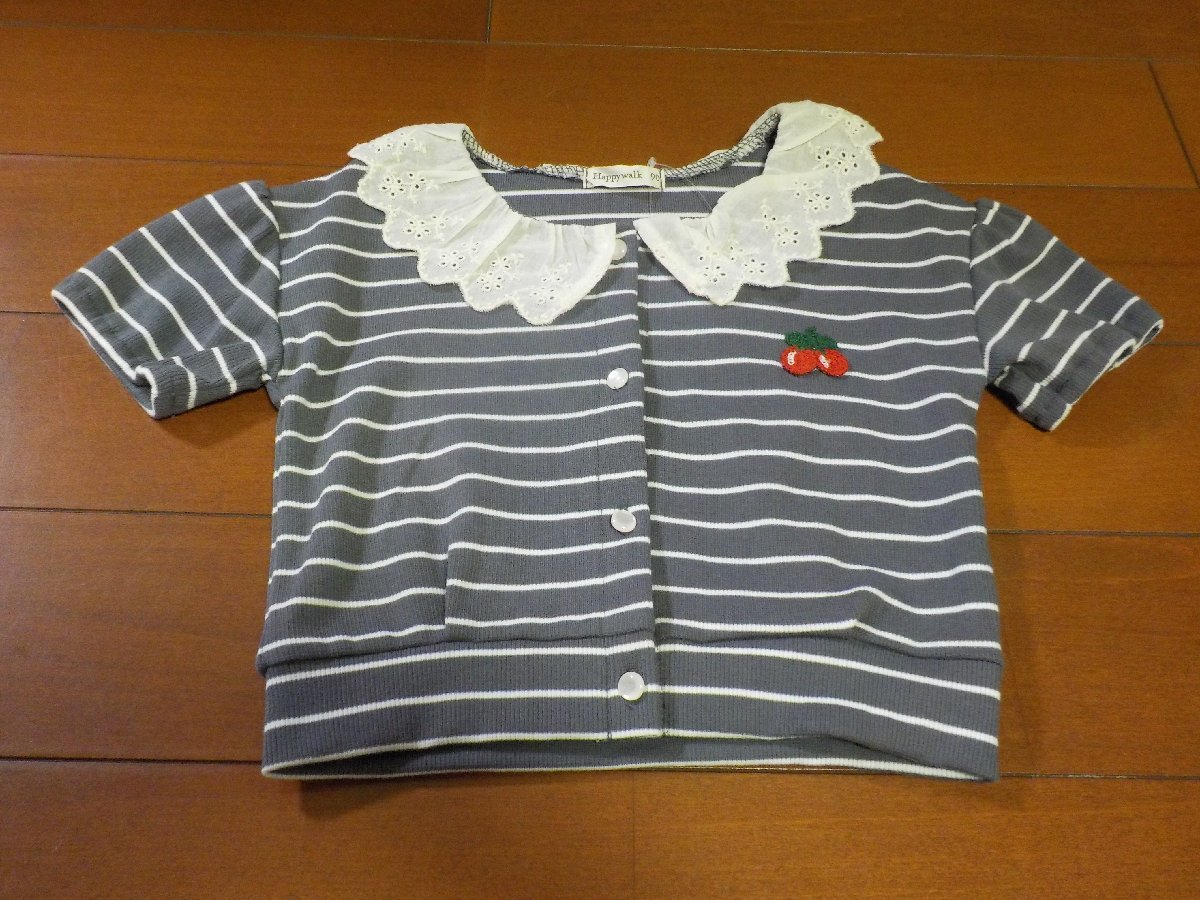 > 値下げ 新品 女児 半袖 カーディガン サイズ90 さくらんぼ レースの衿 クリックポスト発送可 切手可