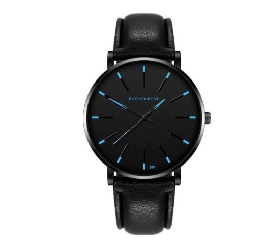 - レザーバンドメンズファッション 薄型軽量腕時計 メンズビジネス ブラックレザーベルト クォーツ時計 ビジネスウォッチ 新品 送料無料
