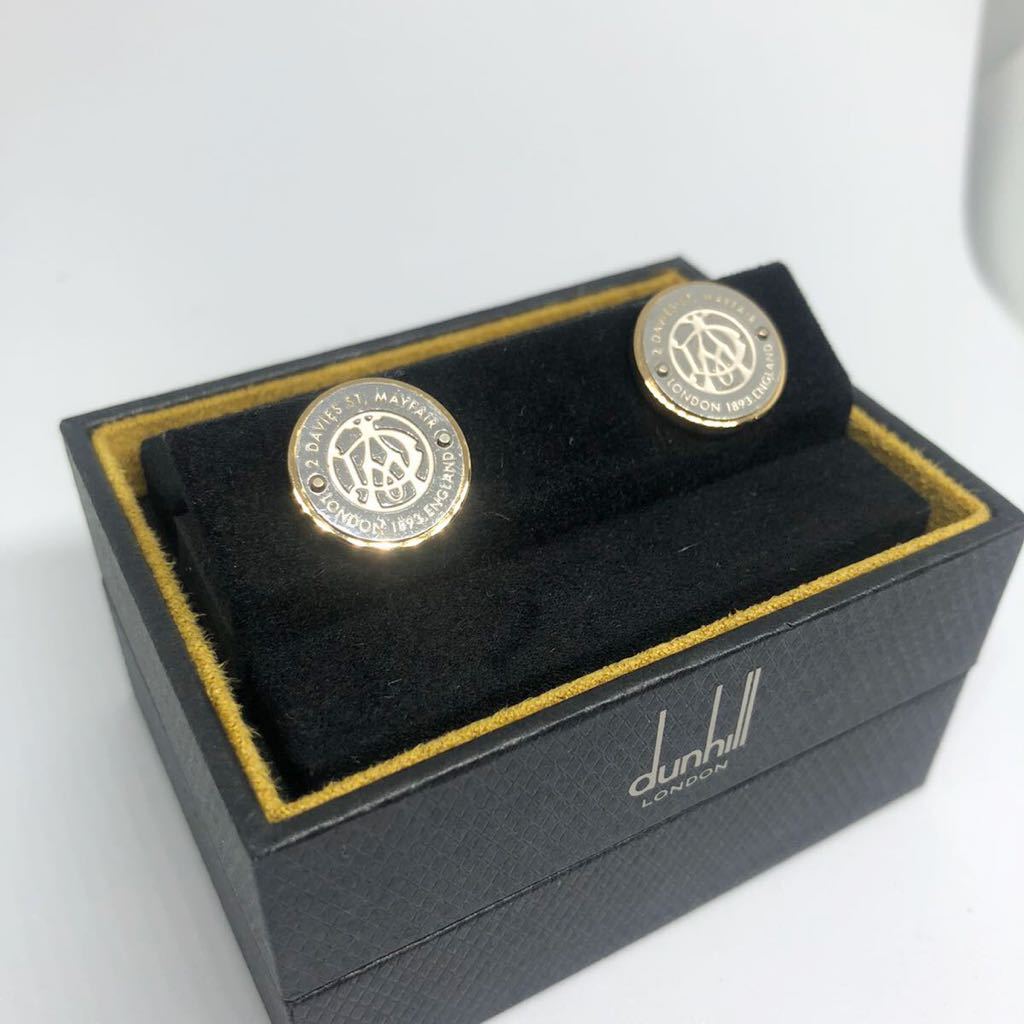 - Dunhill ラウンドロゴ 金縁カフス シルバー ダンヒル カフスボタン モノグラムロゴ バイカラー