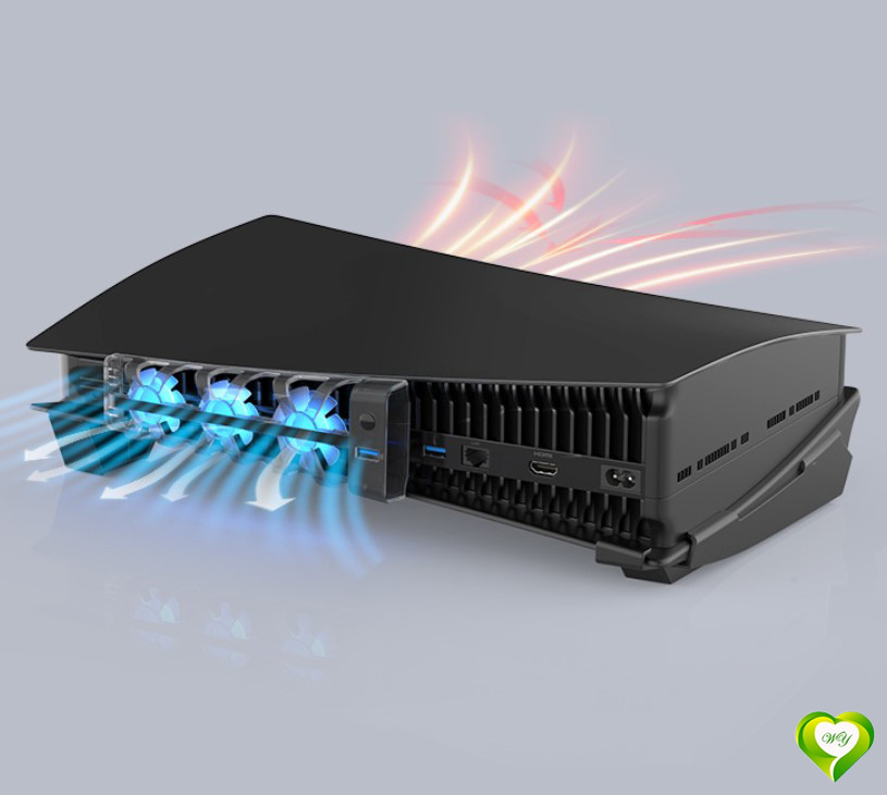 - PS5 水平スタンド 冷却ファン Playstation5 ディスク & デジタルエディション 対応 LEDライト内蔵 USBポート増設 ハイパワー 排熱 黒