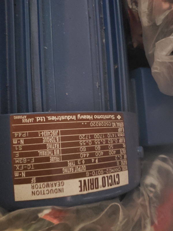 - C3【棚2832111】サイクロ減速機 0.2Kw 1410/1700/1720/min 400/440V 50Hz 0.62/0.55 CNVM02-6070-6 住友 新品