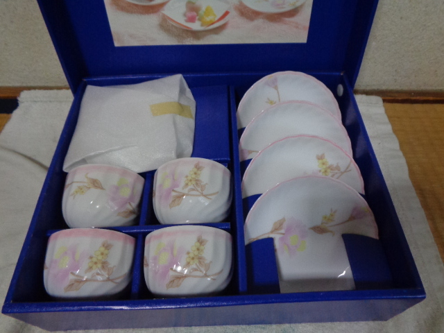 - 茶器揃 湯呑5コ&受皿or菓子皿5枚/山金/箱入未使用美品-長期保管品