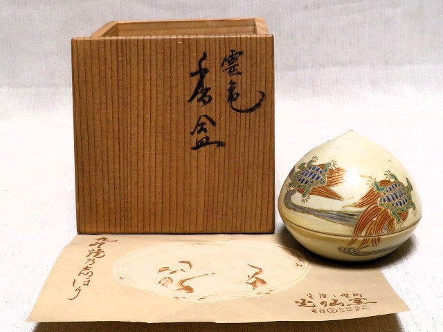 - 霊亀香盒 香合 共箱 栞 光仙 九谷焼 香道具 茶道具
