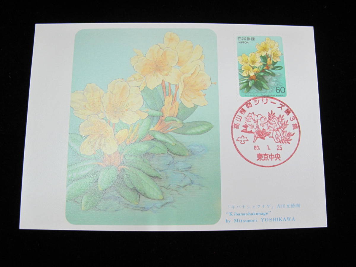 - MC 高山植物シリーズ 第3集 キバナシャクナゲ 全日本郵便切手普及協会 マキシマムカード 初日印