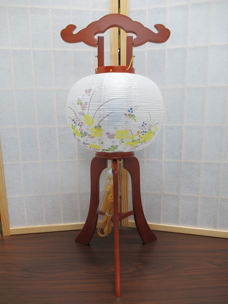 - 盆提灯「岐阜提灯/華のケヤキ/姫あんどん/9号/菊/紙張一重絵/回転筒付/1個」伝統的工芸品【川本仏壇店】川本仏