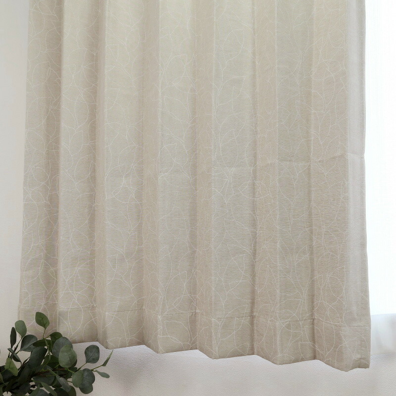 - 遮光カーテン 北欧 リーフ柄 アイボリー 幅100cm×丈110cm2枚 日本製 プリーツが綺麗な形態安定加工