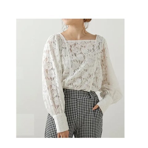 - 新品 定価4950円 レイカズン スクエアネック ボリュームスリーブ プルオーバー レース ブラウス frames RAY CASSIN