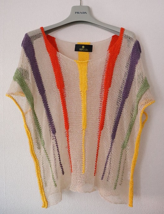 > シースルー ニット生地 ノースリーブニット SONICS ソニックス アイボリー×イエロー×オレンジ×パープル×グリーン フリーサイズ