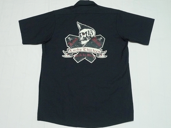 - 美品Lucky13xRED KAP半袖カスタムワークシャツM(L)黒スカルサイコビリーHotRod