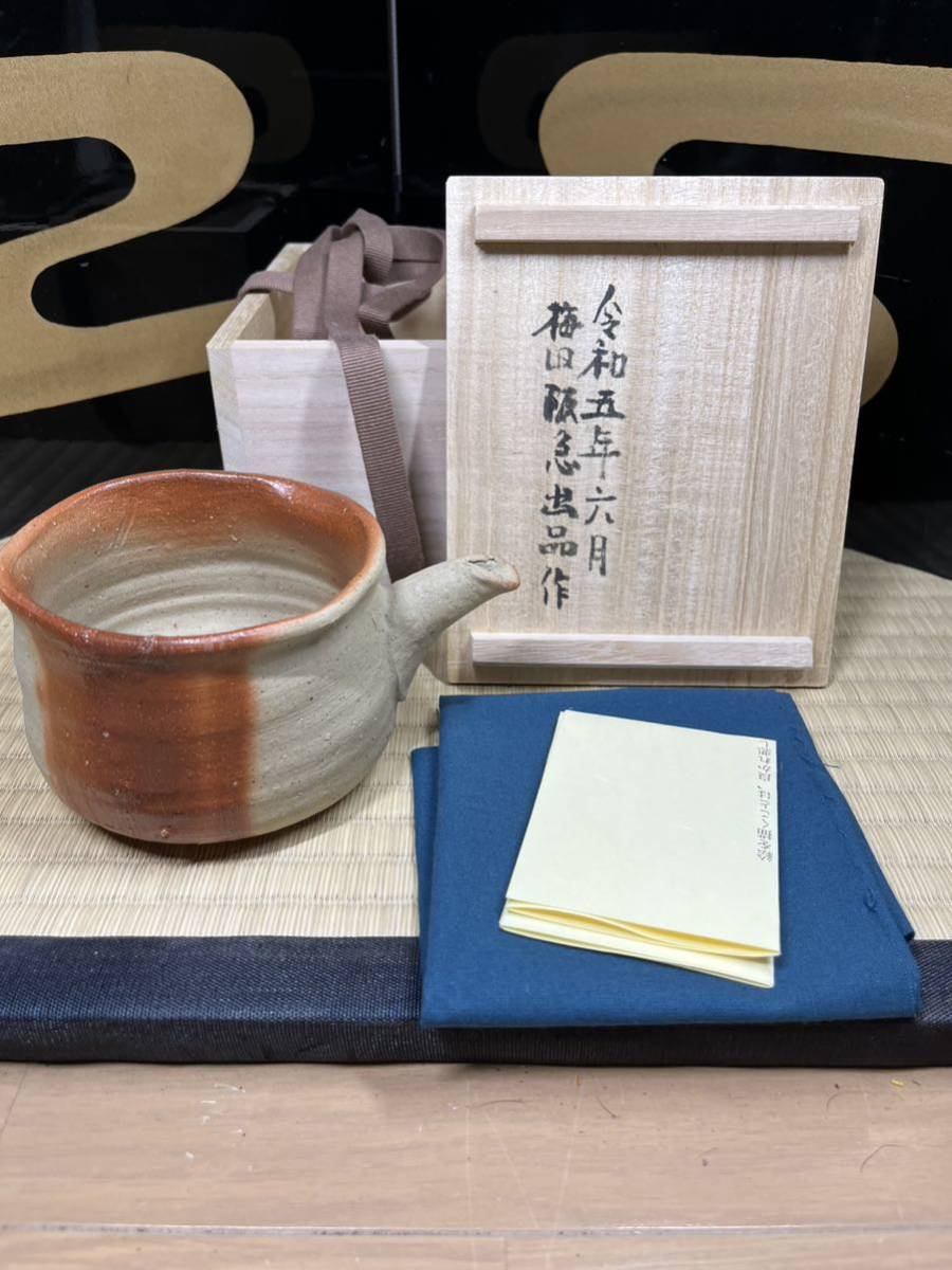 - 個展出品作 中村眞 緋襷 火襷 片口 酒注 阪急うめだ本店 中村眞・和樹 父子展 共箱 共布 栞 酒器 中村真 中村六郎