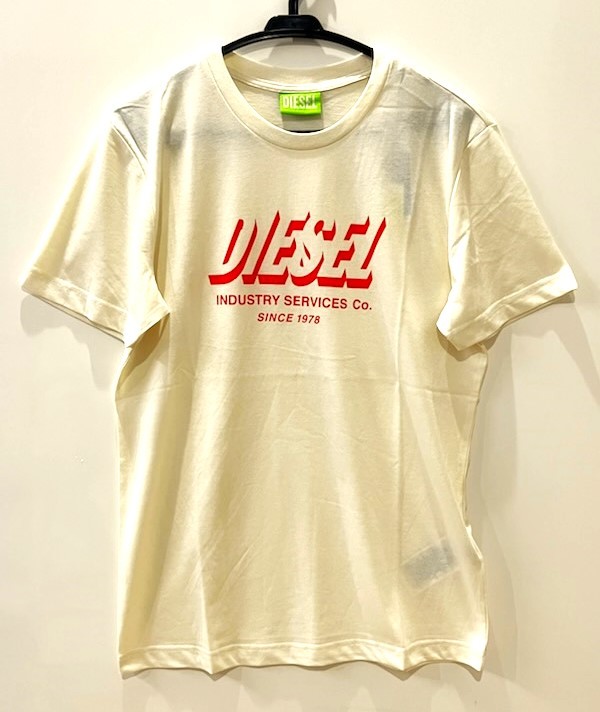 - メンズ ディーゼル クルーネック プリント Tシャツ オフホワイト M