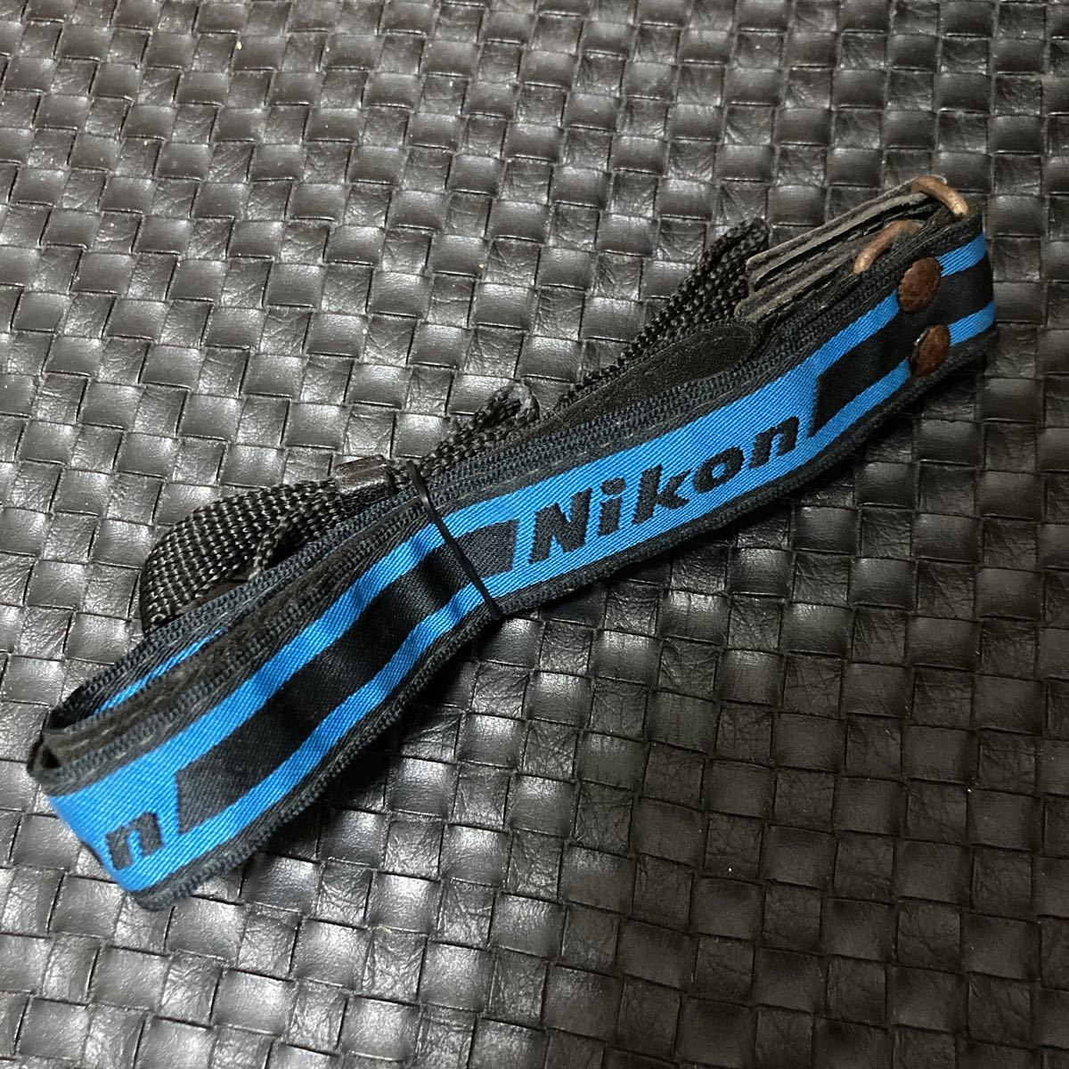 - 【送料無料】Nikon ニコン カメラ ストラップ 青色(ブルー)×黒色(ブラック)リベット 鋲留め ボーダー 幅細 2.5㎝