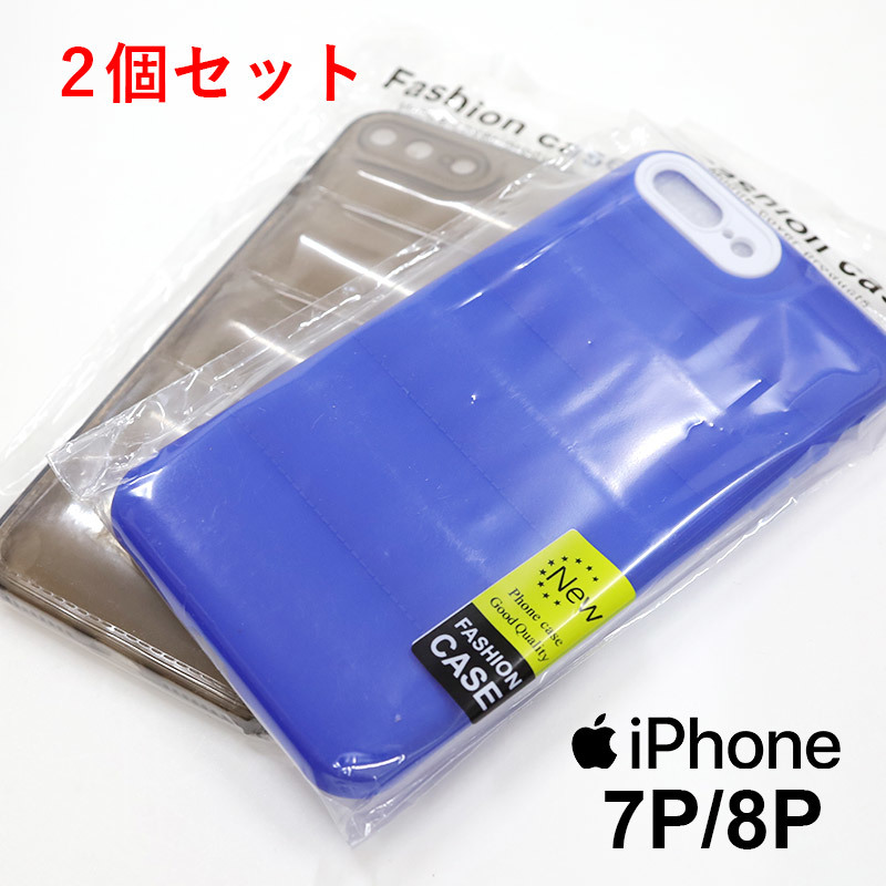 > 新品 iPhone ケース 2個セット 7P/8P アイフォン スマホケース スマートフォン ふかふか ダウンジャケット風 クリア ブルー