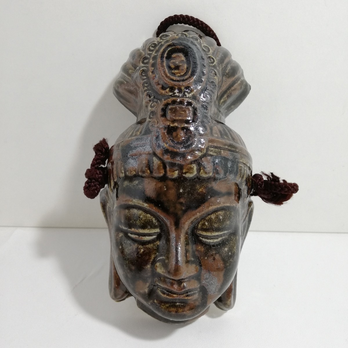- 仏教美術 仏頭 菩薩 陶器製 壁掛け 15.5cm [オブジェ 焼物 陶人形]