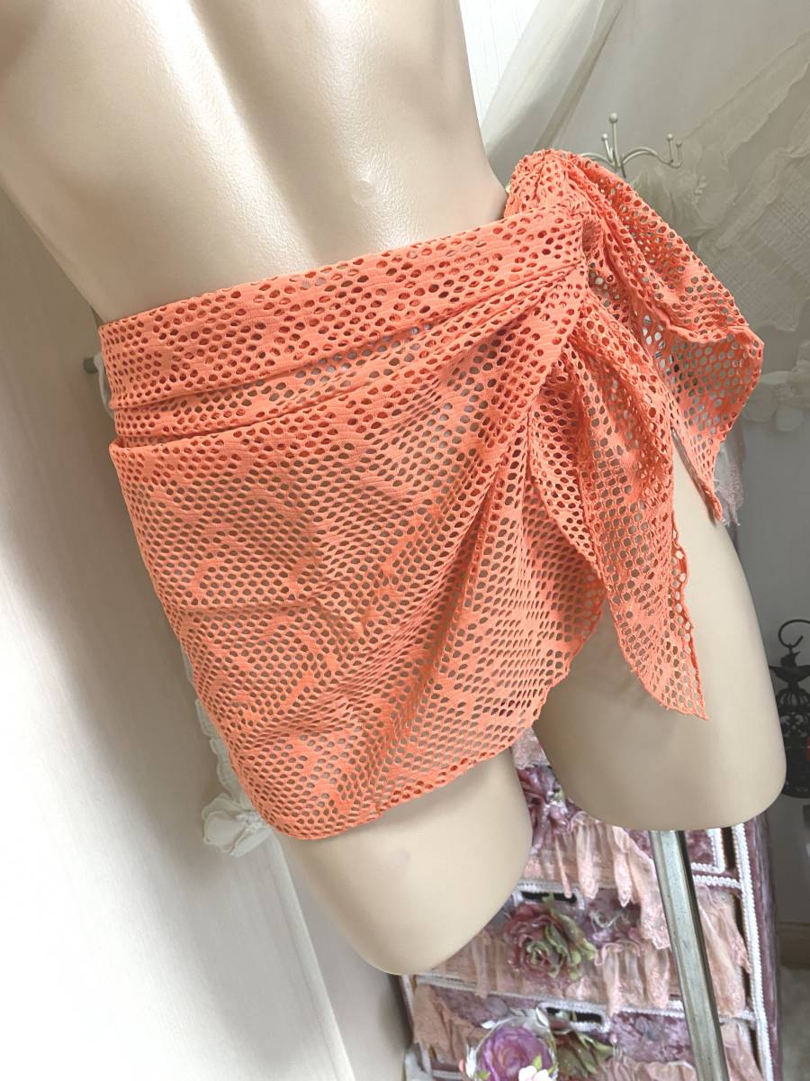 - レディス水着小物9M/ミューラーン【PEAK&PINE】日本製◆穴あきパレオスカート水着:オレンジ 定価:6,000+税