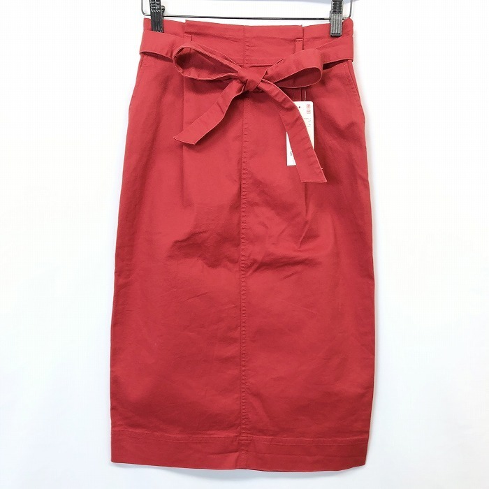 > ユニクロ 【新品】UNIQLO ハイウエストベルテッドナロースカート ウエストゴム 無地 裏地無し 綿×ポリウレタン S レッド 赤 レディース