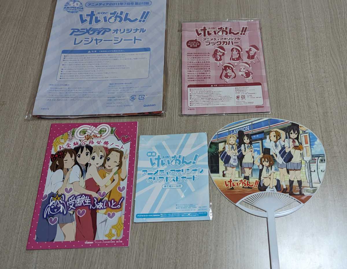 > けいおん! 付録セット(レジャーシート・うちわ・ブックカバー・ノートクリアポストカード各1種)※一部未開封あり