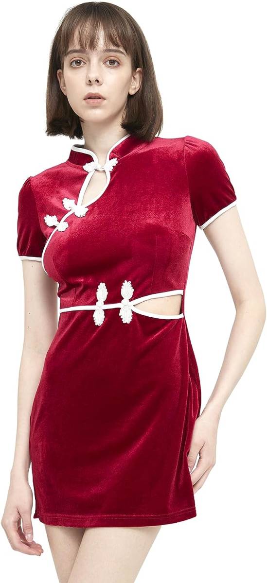 - Choni Choice チャイナドレス チャイナ服 コスプレ ベルベット 胸元あき スリット 誘惑 ハロウィン 仮装 ボディコン パーティー クラブ