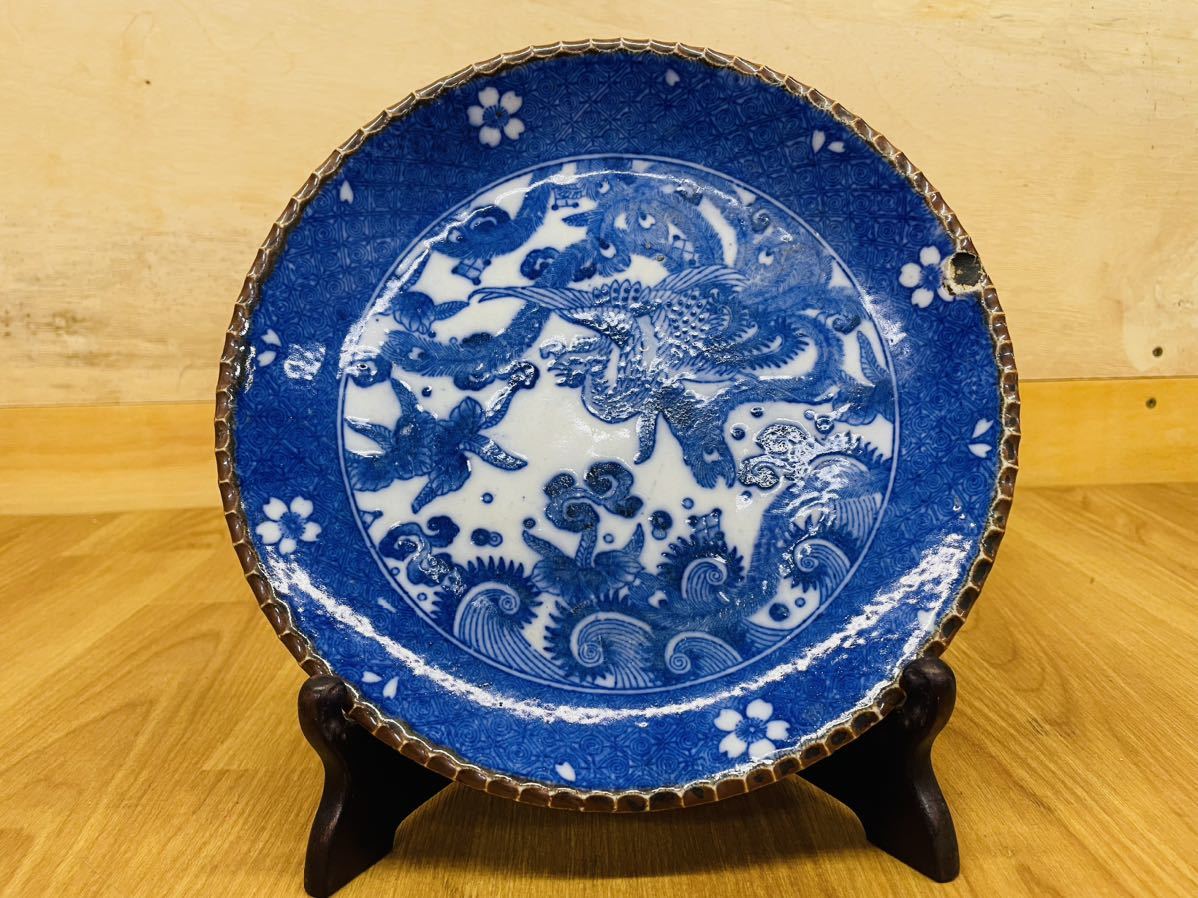 > 旧家蔵出 染付 中国 中皿 飾皿 青花 釉裏青 古玩 古美術 鳳凰図 古染付 古渡 古い食器