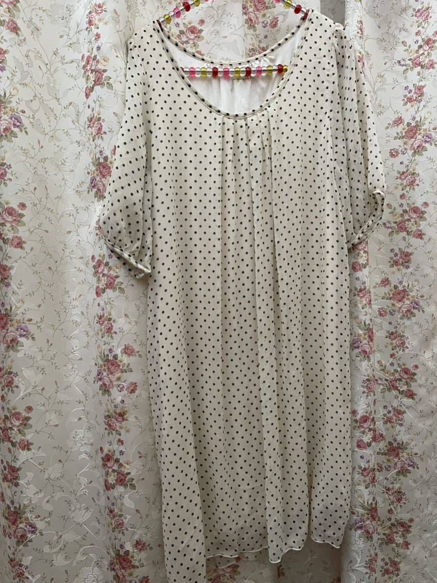 - オフホワイト 黒 ドット 白 系 チュニック L フリー 白にドット ブラウス