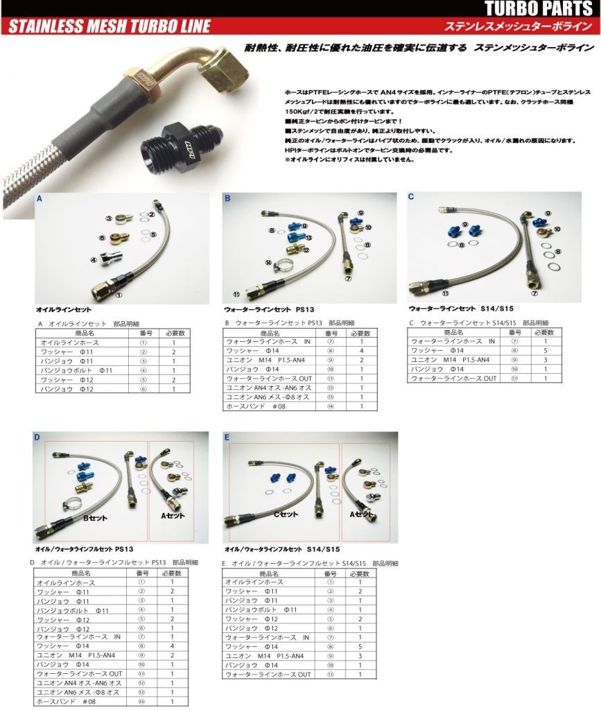 > 【HPI】 ステンレスメッシュターボライン オイル/ウォーターラインフルセット シルビア/180SX PS13/RPS13 SR20DET [HPTL-PS13]
