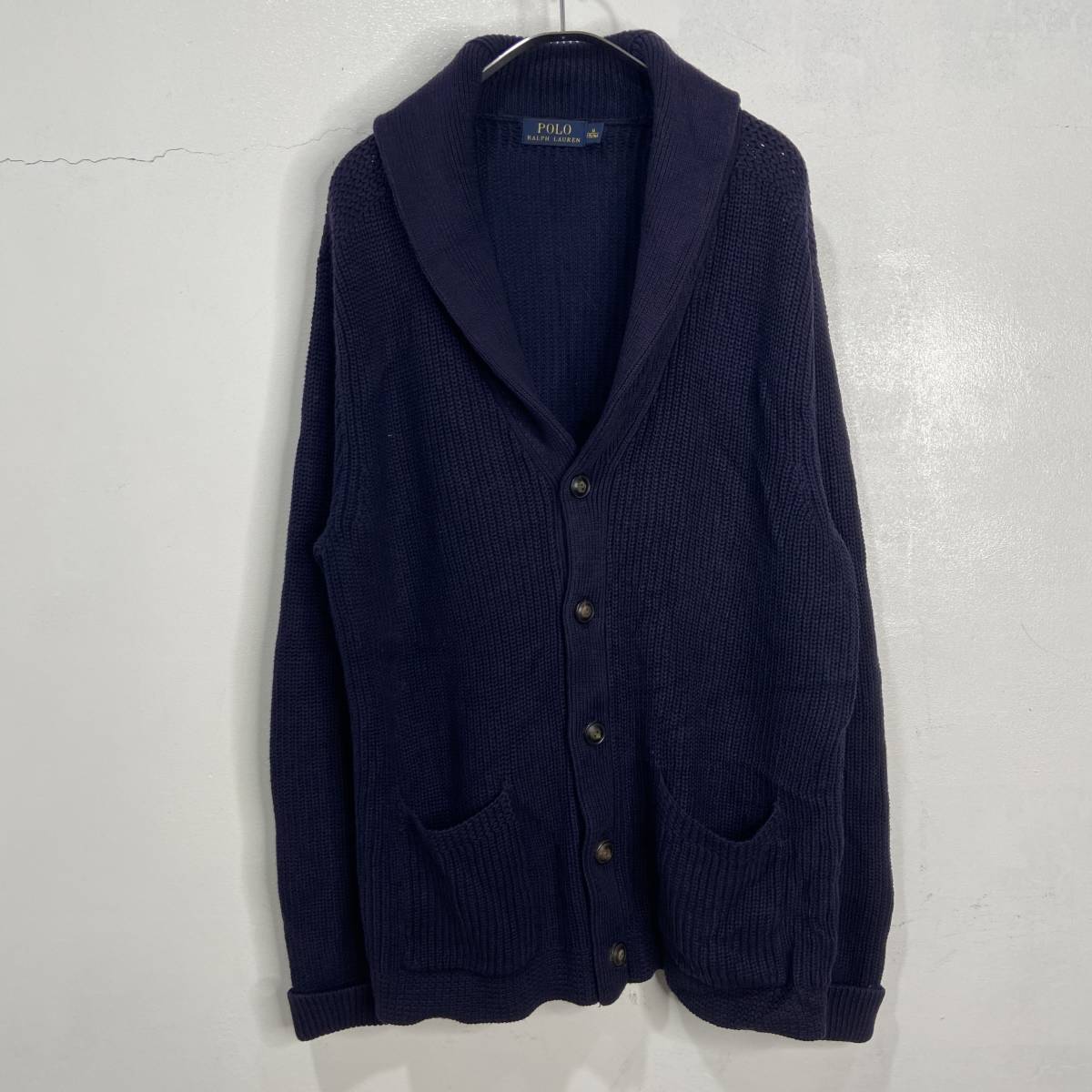 - 送料無料☆POLO RALPH LAUREN☆ラルフローレン☆ショールカラーカーディガン☆ニット☆ネイビー☆M☆H23